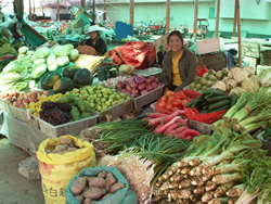 Kartoffeln und Erbsen angebaut, sowie Yaks, Kühe, Ziegen, Schweine und